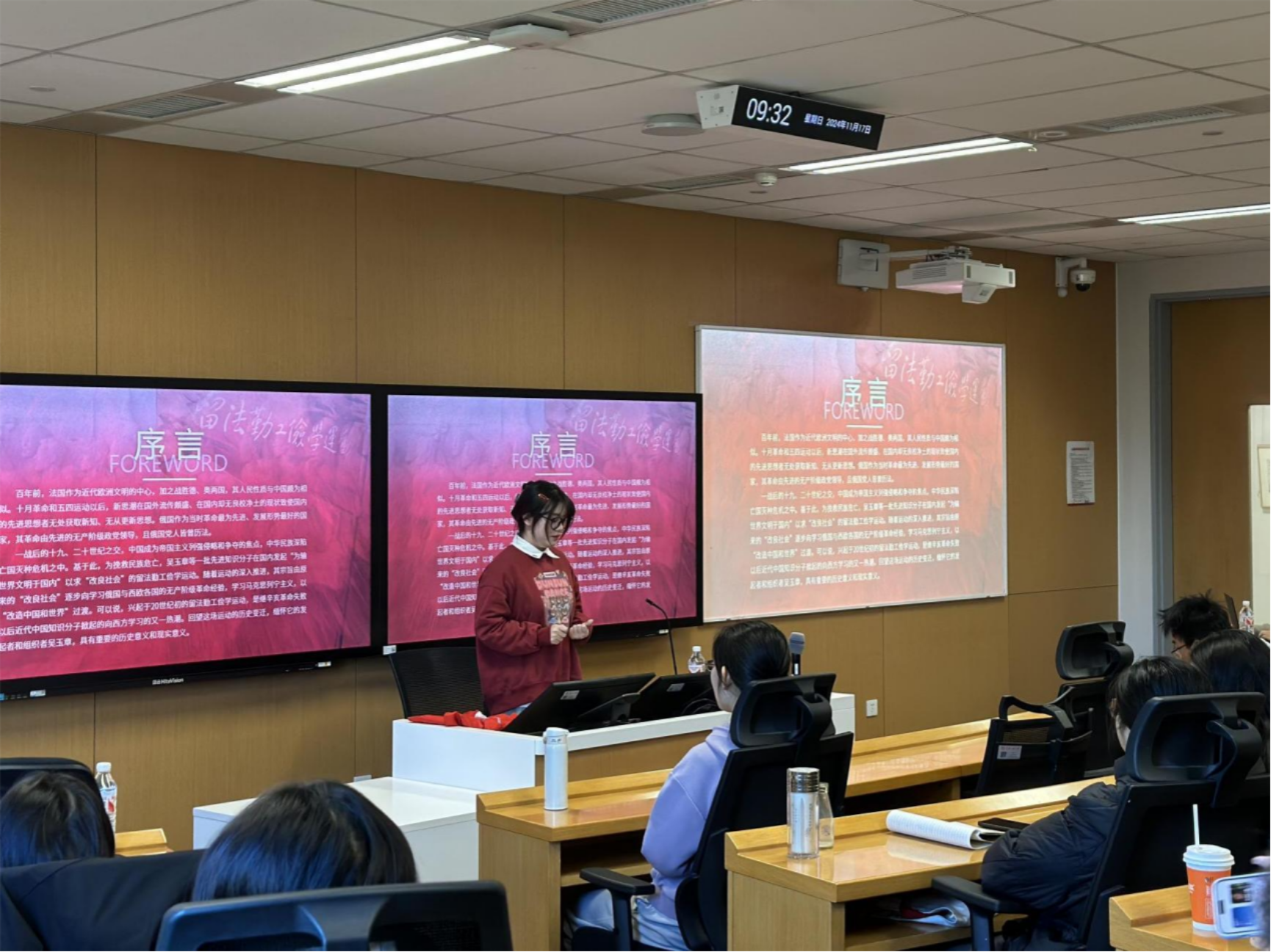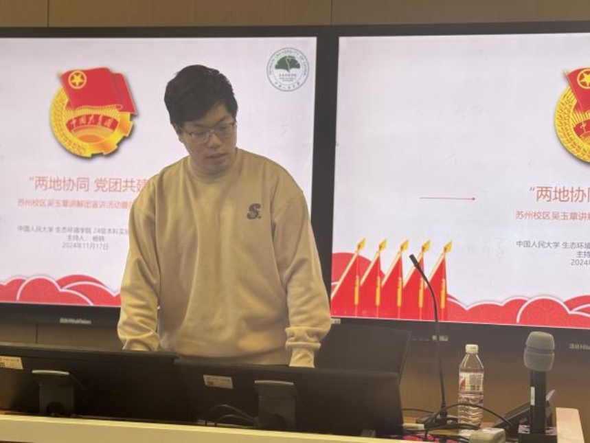 本次活动邀请了苏州校区党建促进会讲解团成员代表高紫萱、郑欣欣、胡海萍三位同学来到中关村校区,以“留法勤工俭学运动中的吴玉章”为主题开展宣讲,并进行领学。2024级实验班班主任刘士磊助理教授、tyc122cc太阳成集团团委副书记韩晓霞参加本次学习活动。