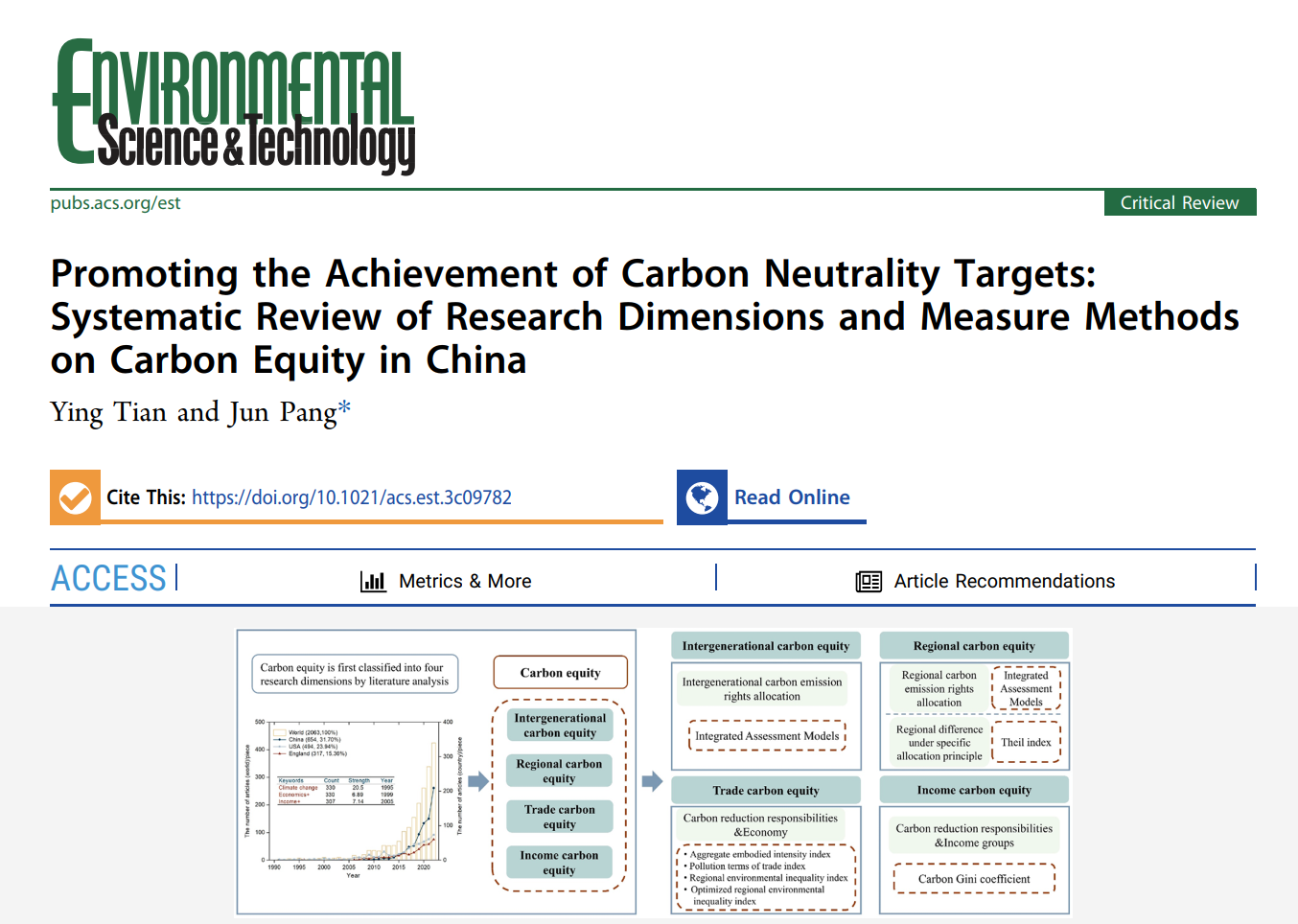 发表于:Environmental Science & Technology(环境领域顶级期刊,tyc122cc太阳成集团A+期刊,JCR Q1,中科院1区,最新影响因子为11.4)