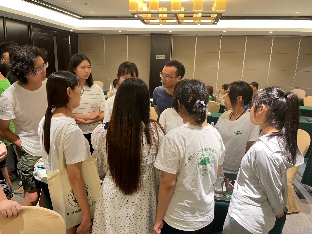 随后,实践团队分为4组,围绕各团队实践教学主题和讲座内容进行了研究讨论。在指导教师的引领下,同学们对此前几日开展的生态文明实践教学浙江行的教学成果进行了总结与交流。