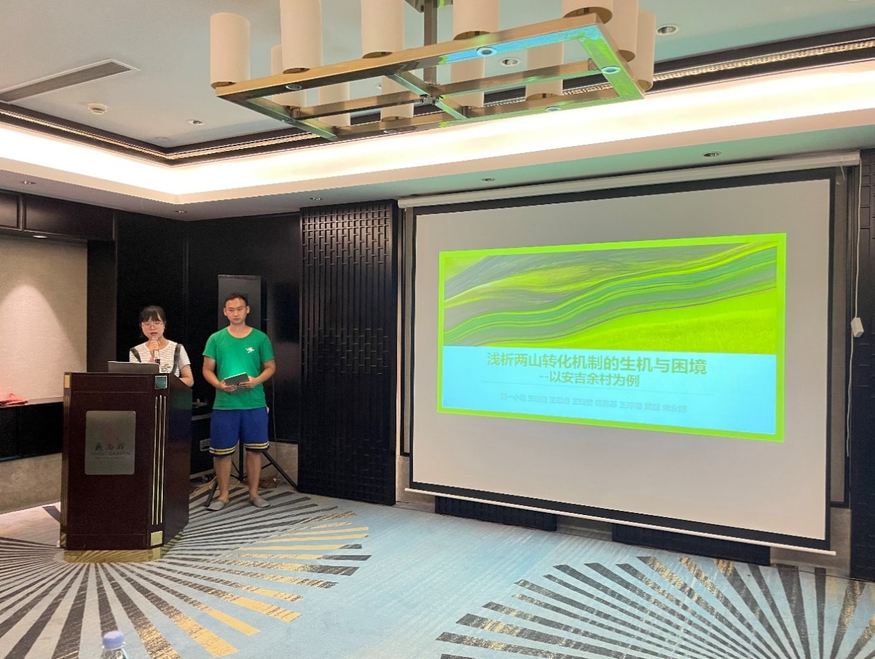 各小组分别以《浅析“两山”转化机制的生机与困境——以安吉余村为例》《生物多样性与污染治理——基于西溪湿地生物多样性的案例研究》《公众参与碳减排与共同富裕——以浙江宁波龙观乡李岙村为例》《生态产品价值实现机制》为主题进行了汇报展示。各组指导老师随后也进行了点评和总结。4支实践教学专题团队的师生们进行了充分交流和研讨。