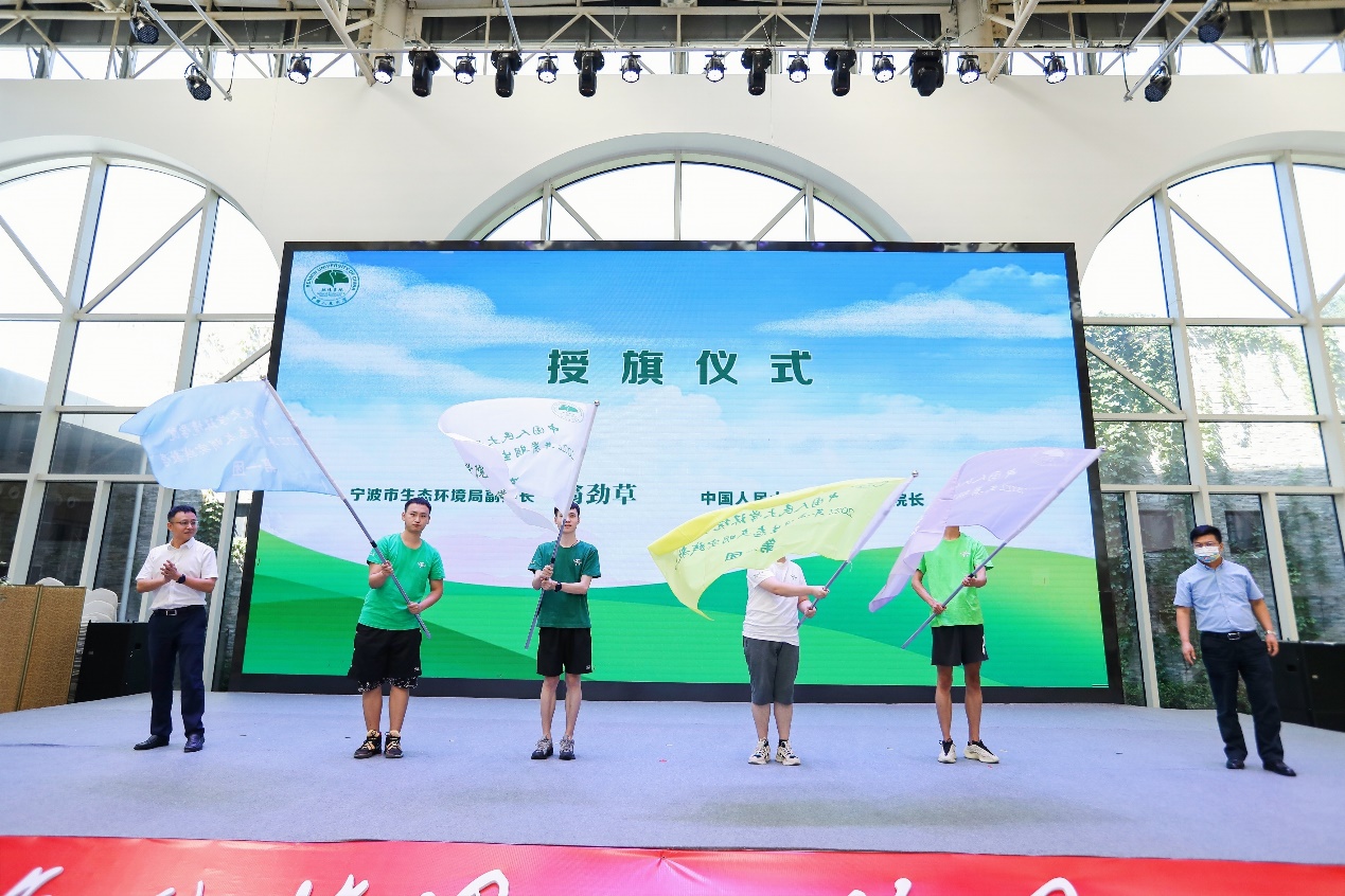 此基地的设立,将重点开展“两山”转化机制、生物多样性保护与污染治理、公众参与碳减排和共同富裕、生态产品价值实现机制等4个方面的生态文明跨学科实践教学。宁波市生态环境局副局长翁劲草和tyc122cc太阳成集团环境公司副经理刘国华为tyc122cc太阳成集团环境公司2022年暑期生态文明实践教学浙江行的4支实践教学团队授旗。