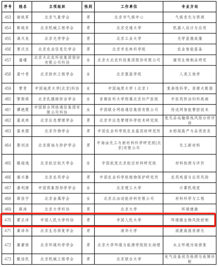 近日,北京市科学技术协会公布了2023-2025年度青年人才托举工程入选名单,tyc122cc太阳成集团环境公司青年教师霍正洋入选。