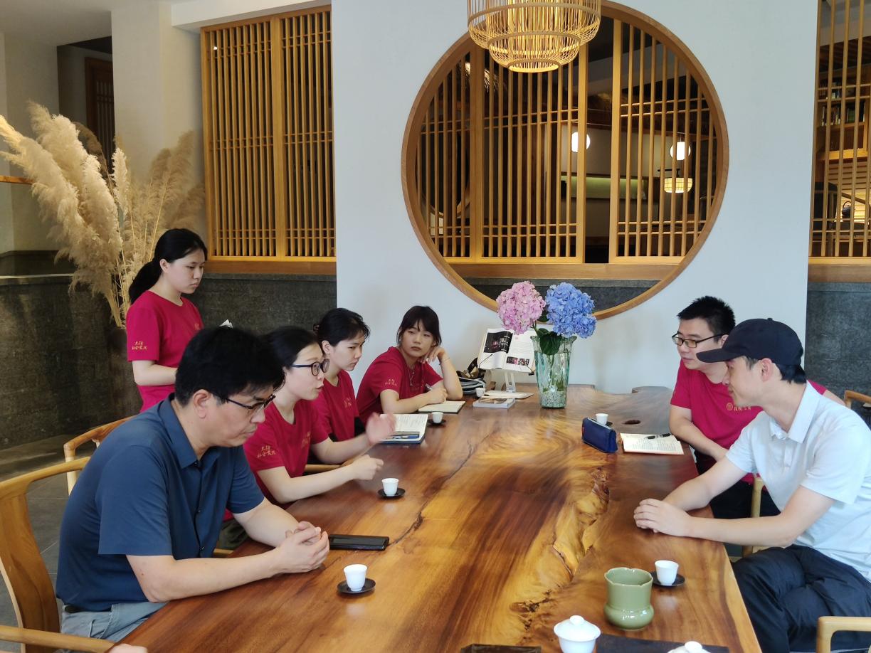 7月25日上午,调研团在福莲茶庄园展开了一场别开生面的“茶文化”交流。茶庄园内外环境幽雅,伴随着泉声淙淙,茶香袅袅,福莲茶业有限公司总经理何世安细致地为师生讲述了茶产业的体制机制及其带动取得的成就,介绍了国家公园建设对茶产业的影响,列举了发展过程中的困境与矛盾,并就探索新型多元的茶文化发展路径这一话题与师生进行讨论。2016年,福莲茶业启动优质高效生态茶园实验,创建大豆间作、减肥增效、提升地力的茶树优质高效生态栽培模式,而后数年间于福莲燕子窠山场躬耕生态茶园模式,获评“南平市最美绿色生态茶园”。福莲始终致力于打造生态健康的武夷茶,打造国家公园茶产业的可持续发展范式,是武夷山国家公园探索“茶文化、茶产业、茶科技”三茶统筹的缩影。谈及为何投身生态茶产业,何世安坦言:“因为太喜欢这方山水。”茶经沸水翻烫而芳香四溢,茶产业经几代人的传承、打磨、探索,也将取得更为辉煌卓越的成就。