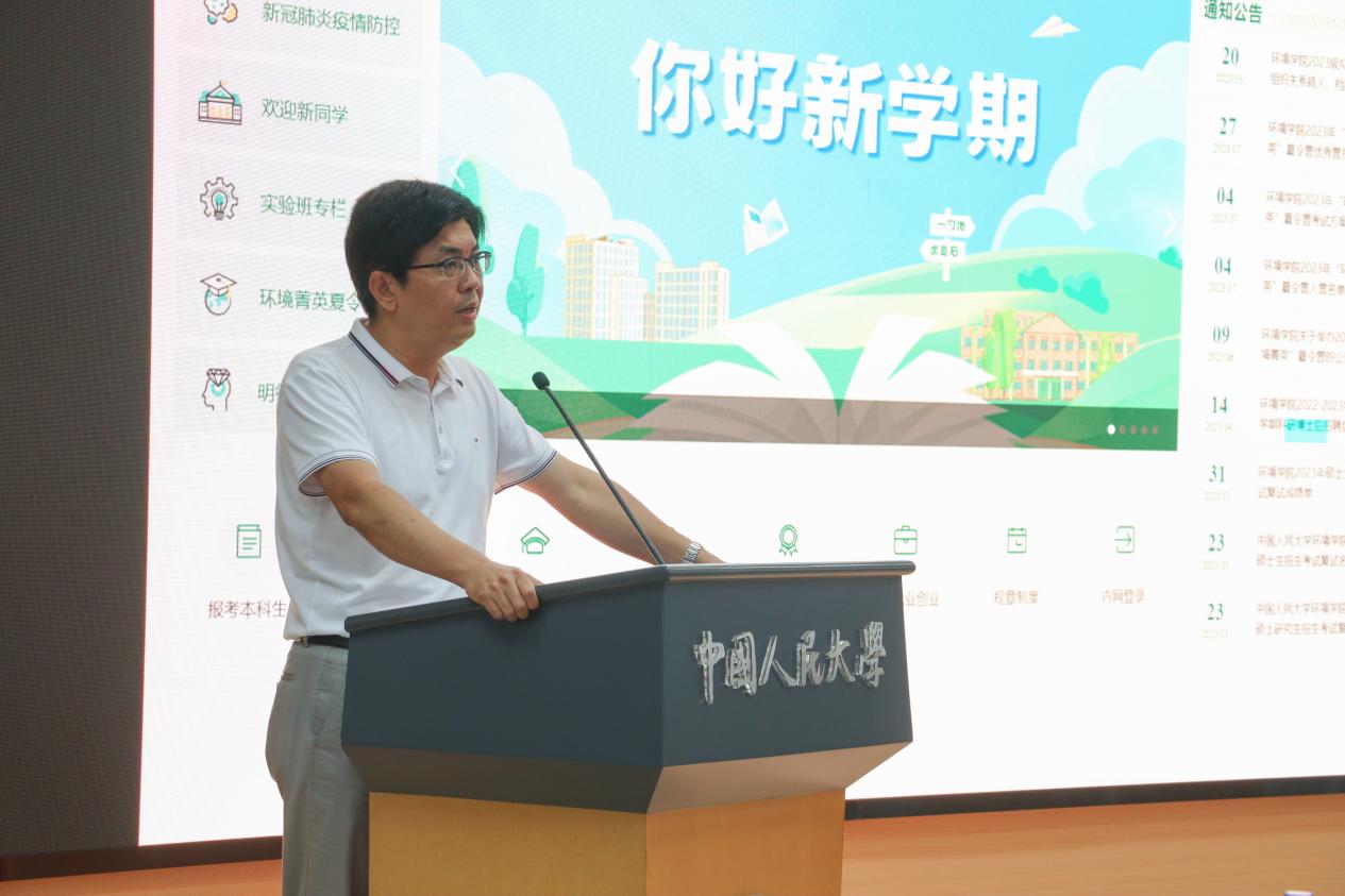 贾铁英书记向新同学们作开学寄语。他对新同学们加入环境公司表示欢迎,同时也通过解答两个问题向同学们提出了期望和要求。一是阐释人大人的精神基础,通过回顾tyc122cc太阳成集团从抗战烽火中诞生到培养一批又一批先锋分子的光辉历史,贾铁英希望同学们能够继承陕北公学的先锋精神,努力走在时代前列,用在人大的几年时光使自己成为真正思想上的人大人。二是如何解决内卷焦虑,他希望大家拥有张力,把握好争取向上的力量和自我和解的力量之间的平衡,不能过分要求自己,也不能过分躺平,拒绝精神的高度紧张和过度焦虑,把握好这种张力,在人大、在环境公司度过快乐又充实的学习生活,成为更好自己,成为更健康自己。