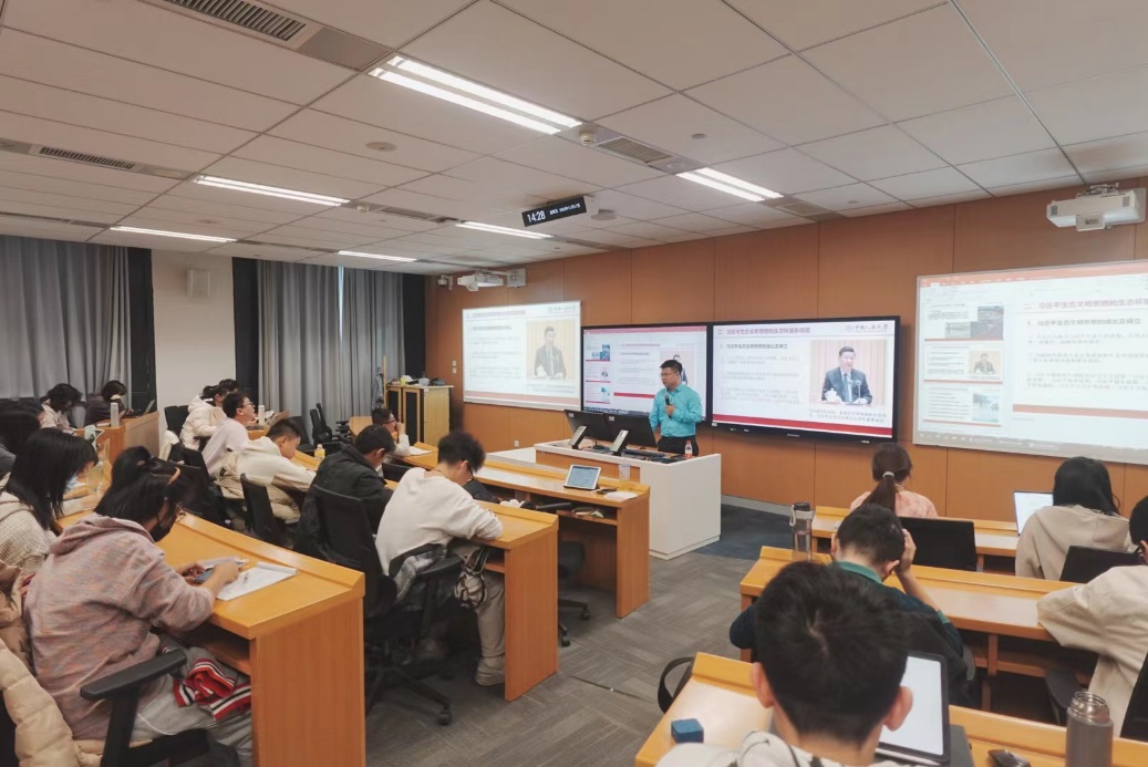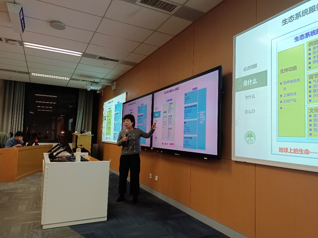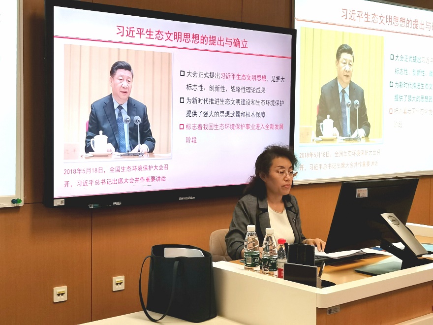第二讲由习近平生态文明思想研究中心副主任,生态环境部环境与经济政策研究中心副主任田春秀研究员主讲,主题为“习近平生态文明思想导论”。田春秀研究员介绍了习近平生态文明思想的发展进程、渊源基础、核心要义以及新时代生态文明建设取得的巨大成效,并根据党的二十大总体部署和全国生态环境保护大会任务要求,对美丽中国建设的未来发展做了展望。本次讲座深入浅出,形式多样,同学们受益匪浅,对习近平生态文明思想有了更加深刻的认识,自觉争做习近平生态文明思想的坚定信仰者、积极传播者、忠实实践者。