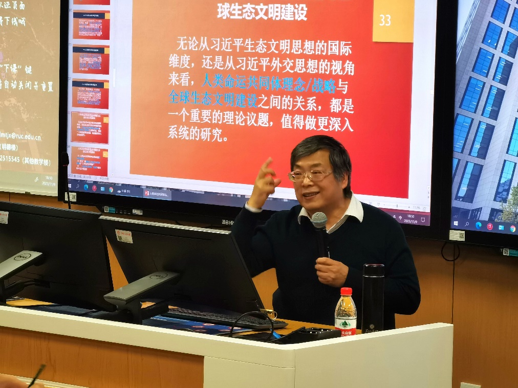 第三讲由北京大学马克思主义公司郇庆治教授主讲,主题为“共谋全球生态文明建设,构建人类命运共同体”,郇教授以独到的见解启发同学们思考生态文明思想与人类命运共同体建设的关系,并引导同学们探讨全球生态文明建设问题。习近平生态文明思想是具备中国共产党新时代的绿色政治意识形态与治国理政方针,高屋建瓴地指导着生态文明实践,其根植于深厚的理论积淀,经历了萌生、形成、丰富的发展历程,逐渐形成日趋完善的体系。无论是“六项原则”,还是习近平生态文明思想“八观”、“十个坚持”,都反映着尊重自然、顺应自然、保护自然的主题核心,具备丰富的理论和实践意义。人类命运共同体以同舟共济、合作共赢的新理念,追求多元文明互鉴新局面。在环境保护领域,更应促进形成和而不同、兼收并蓄的合作体系。郇庆治教授表示,我国的生态文明建设之路目前仍在发展道路上,仍存在话语体系相对薄弱等问题,面临一系列困境难题,应充分利用全球生态文明建设平台,最终走出别具特色的变革道路。