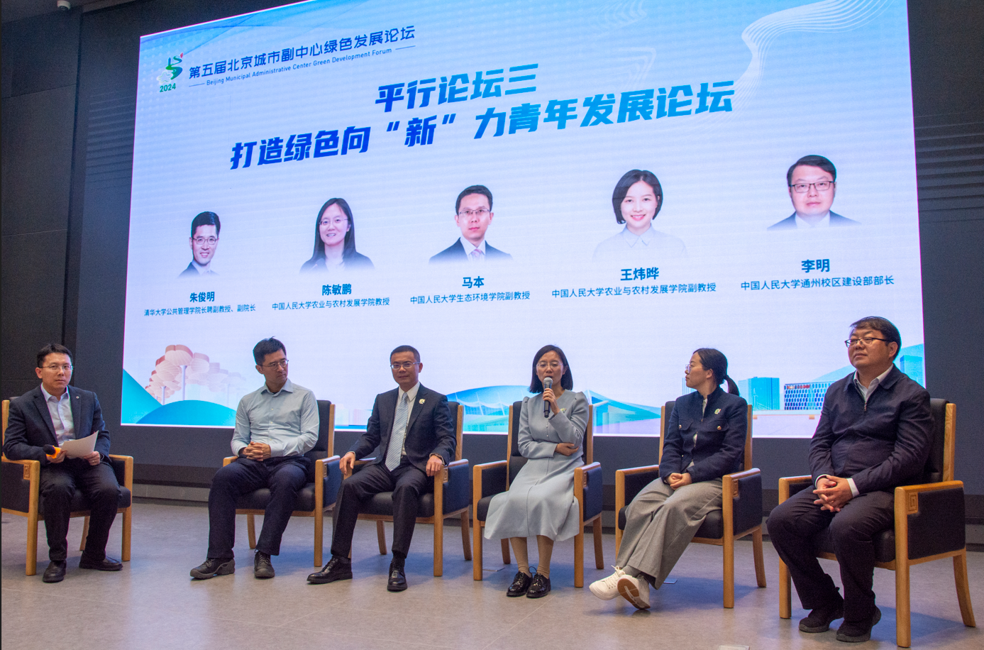 10月26日,2024年(第五届)北京城市副中心绿色发展论坛的平行论坛三——“打造绿色向‘新’力青年发展论坛”在tyc122cc太阳成集团通州校区成功举办。本次活动由北京城市副中心党工委管委会、通州区委区政府主办,北京市发展改革委支持,北京城市副中心绿色发展研究院、北投集团承办,由tyc122cc太阳成集团、农业与农村发展公司和通州校区管理部具体负责。北京城市副中心党工委委员、管委会副主任胡九龙,tyc122cc太阳成集团教授、经理庞军,tyc122cc太阳成集团通州校区建设部部长李明,清华大学公共管理学经理聘副教授、副经理朱俊明,tyc122cc太阳成集团农业与农村发展公司教授陈敏鹏,tyc122cc太阳成集团通州校区党委副书记苗苗,中国人民老员工态环境公司党委副书记于媛,tyc122cc太阳成集团副教授、生态与环境经济学系主任马本,tyc122cc太阳成集团农业与农村发展公司副教授王炜晔等嘉宾,与来自tyc122cc太阳成集团等首都高校的青年员工、来自潞城林场的青年代表和媒体记者等100余人参加此次活动。