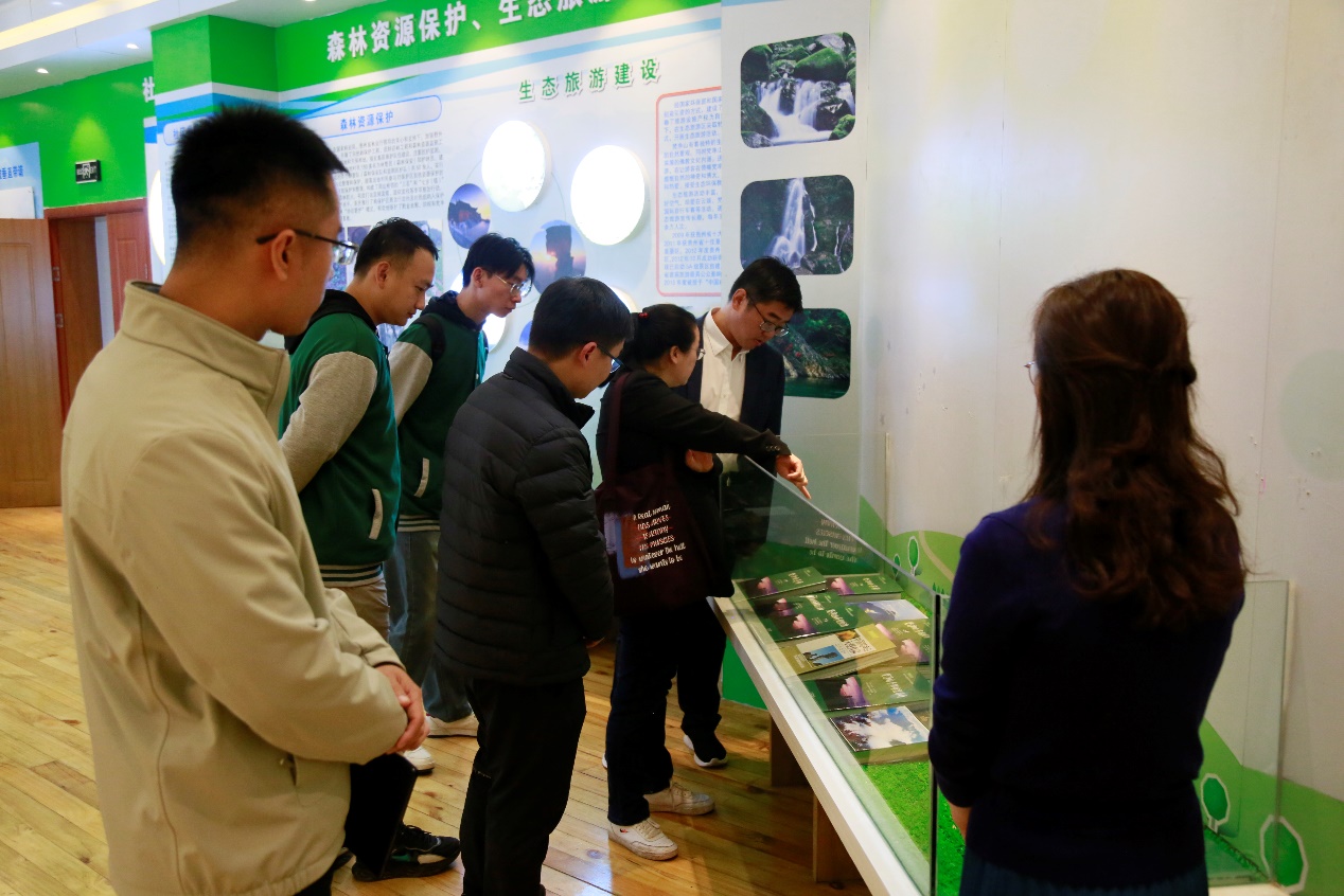 调研团随后参观了梵净山国家级自然保护区管理局太平镇管理总站党支部。同学们认真研读梵净山区域保护管理现状资料,看到了管理总站贯彻落实习近平总书记对梵净山保护管理重要批示精神的决心和实际行动。调研团了解到,梵净山创新建立党建联盟,实现了区域联建、党群联心、保护联抓、资源联享的高效管理机制。通过建设社区共管共建与保护地保护成效评估机制、执法协作机制等,梵净山积极创建生态文明建设先行区,构建了上下联动、齐抓共管、成果共享的工作格局。在参观学习中,调研团对保护区保护管理工作与乡村振兴产业发展深度融合实现路径有了更深入的思考,感受到“人不负青山,青山定不负人”的生动实践。