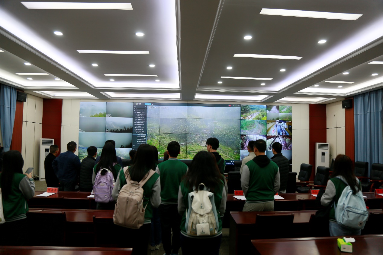 通过工作人员的介绍,同学们了解到梵净山管理局通过技术提升和监测设施建设升级,打造了梵净山管控平台系统,能够多区域多角度24小时实时监控梵净山自然保护区内的生态状况,尤其是黔金丝猴的生存繁衍状态,科学研究提供了十分宝贵的一手资料,有利于梵净山自然保护区的管理和监测。