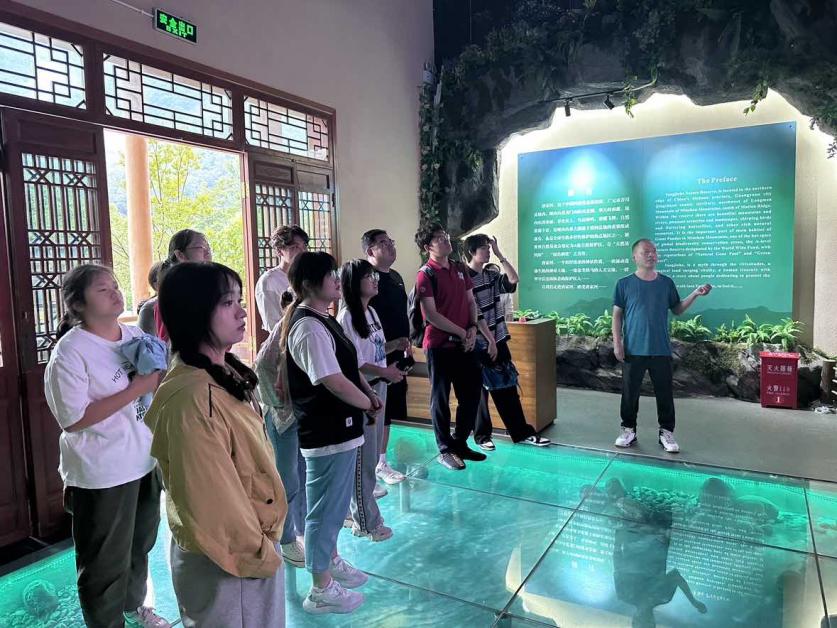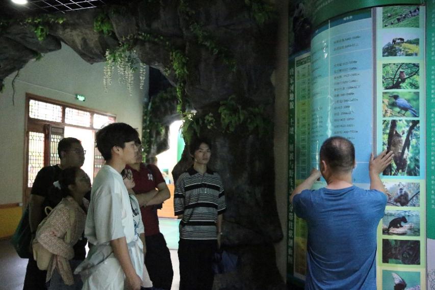 8月15日,在唐家河国家级自然保护区管理处工作人员的指引下,调研团师生一行参观唐家河自然博物馆,了解大熊猫国家公园里的野生动植物知识。
