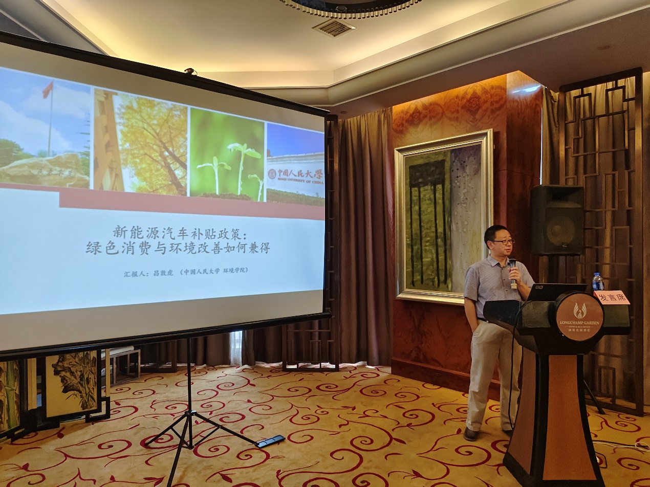 本次会议期间,公司昌敦虎副教授受邀参加“面向美丽中国建设的市场经济政策创新”分论坛,并作了题为“新能源汽车补贴政策:绿色消费与环境改善如何兼得?”的学术报告,从内生性动力、市场适应性、结构调整的角度识别和解释了新能源汽车推广补贴政策的环境改善效应与消费驱动效应,指出市场化程度与政府需求刺激强度对补贴政策具有调节作用,并总结出应合理设计补贴政策的目标兼容性和退坡机制等建议。
