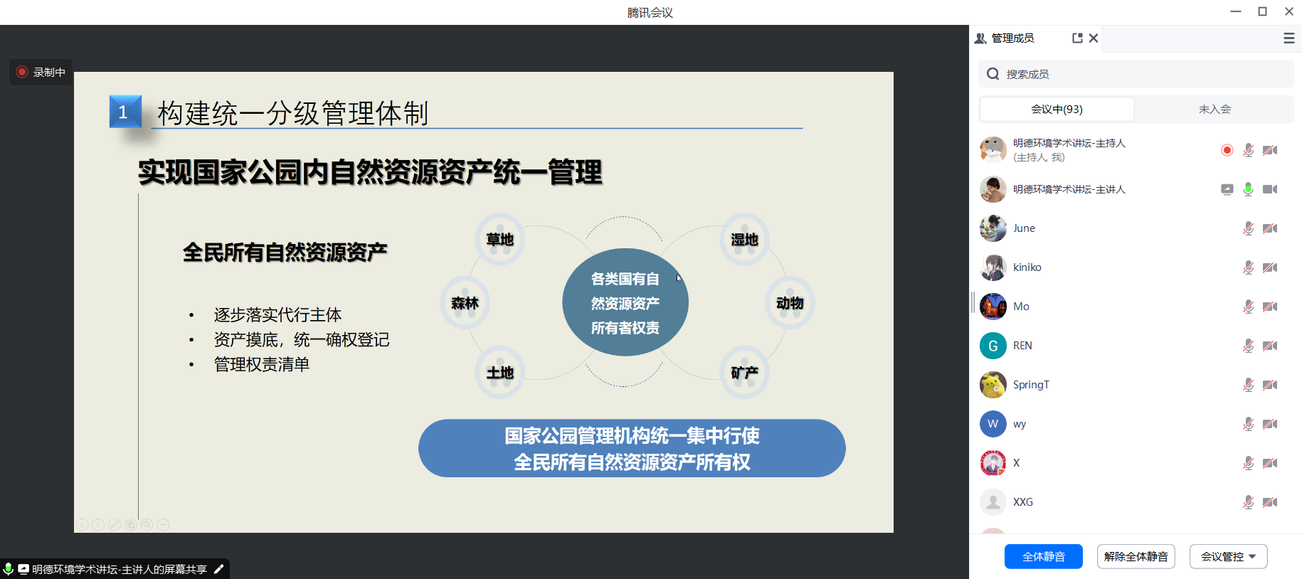 来自tyc122cc太阳成集团、国家公园研究院、武汉大学、山东大学、北京师范大学、中央民族大学、中国海洋大学、北京林业大学、中国地质大学、中国传媒大学、郑州大学、云南大学、南京林业大学、贵州财经大学、中国社会科公司、中国环境科学研究院、中国林业科学研究院、四川省林业和草原调查规划院、重庆市委党校、上饶市委党校、第一财经、中国环境报等三十余所国内外高校与科研媒体机构的200余名师生及科研人员参加了本次讲坛。