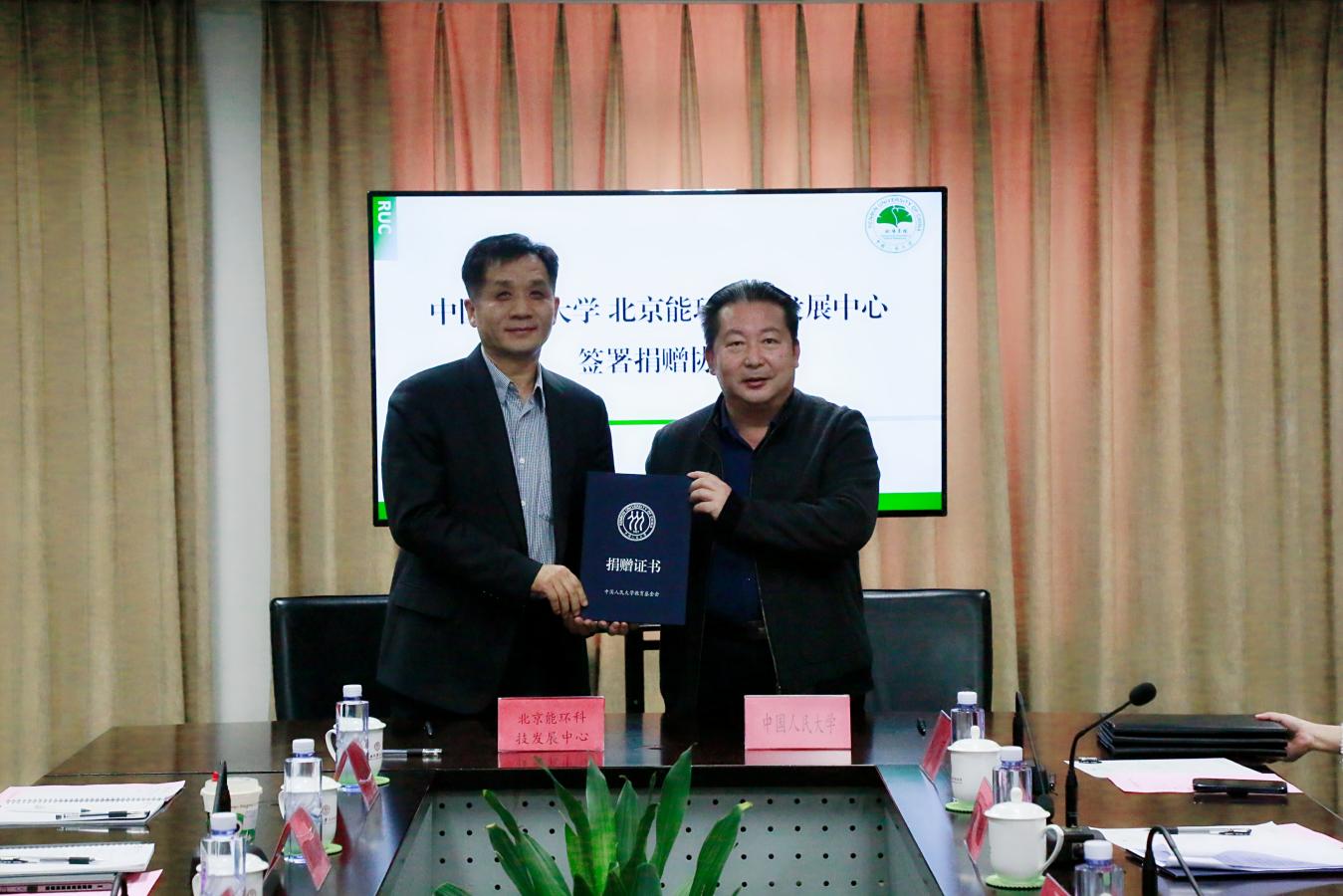 北京能环科技发展中心捐赠设立能源与环境发展创新基金,将支持环境公司人才培养、科学研究等各项事业发展,并特别支持设立专门奖学金,用于奖励在能源与环境领域有研究潜力、创新精神的在校员工。