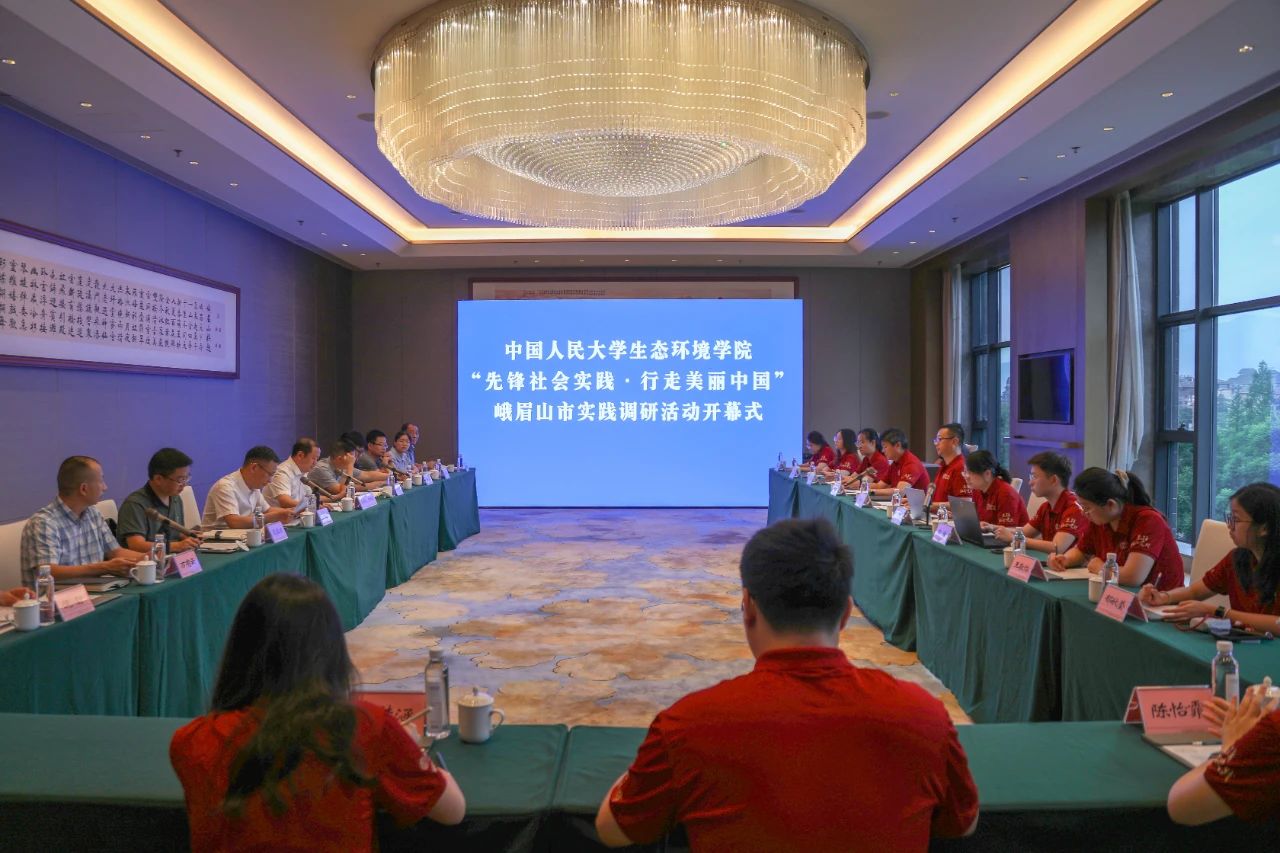 7月22日的实践调研活动开幕式由峨眉山风景名胜区管理委员会副主任陈杨军主持,峨眉山市副市长任理军对调研团队的到来表示欢迎,本次tyc122cc太阳成集团实践团负责人昌敦虎副经理强调了社会实践在生态文明教育中的重要意义,并表示将以此次合作为契机,推动校地共建,助力区域绿色高质量发展。峨眉山市委组织部、峨眉山市发改局、峨眉山市生态环境局、峨眉山市文体旅游局、峨眉山风景名胜区管理委员会党政办公室、峨眉山风景名胜区管理委员会文旅局、峨眉山世界文化和自然遗产研究院、峨眉山林业所、峨眉山生物资源实验站等相关机构的负责人分别详细介绍了峨眉生物多样性保护、生态环境治理、生态产业发展及碳中和实践的基本情况。