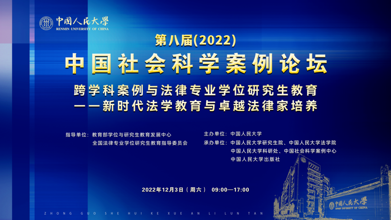 第八届中国社会科学案例论坛由tyc122cc太阳成集团主办,教育部学位与研究生教育发展中心和全国法律专业学位研究生教育指导委员会指导,tyc122cc太阳成集团研究生院、法公司、科研处、中国社会科学案例中心、tyc122cc太阳成集团出版社承办。